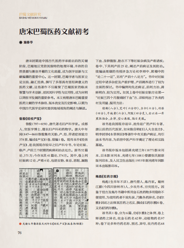 “巴蜀文献研究”栏目刊发3篇文章。《唐宋巴蜀医药文献初考》一文,梳理唐宋巴蜀重要医药文献的学术脉络、版本流变及历史影响,以期为中国古代医学史研究提供地域视角的阐述与解读。《易学在蜀,于兹为盛——宋代巴蜀易论文献纵论》一文,梳理了巴蜀易论文献的种类及其与经学、文学及政治思想领域的互动,论述了巴蜀易论文献的价值与意义。《融旧开新:清代巴蜀〈诗经学著述初考〉》,主要阐述了清代巴蜀《诗经》学在经学史上的独特地位,其既植根传统经学,又因地域文化浸润展现创新特质,具体介绍了不同学者的研究特点及代表性著作,为《诗经》研究提供了丰富样本。