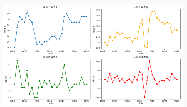 《绵阳年鉴》30年的类目、分目变化统计情况