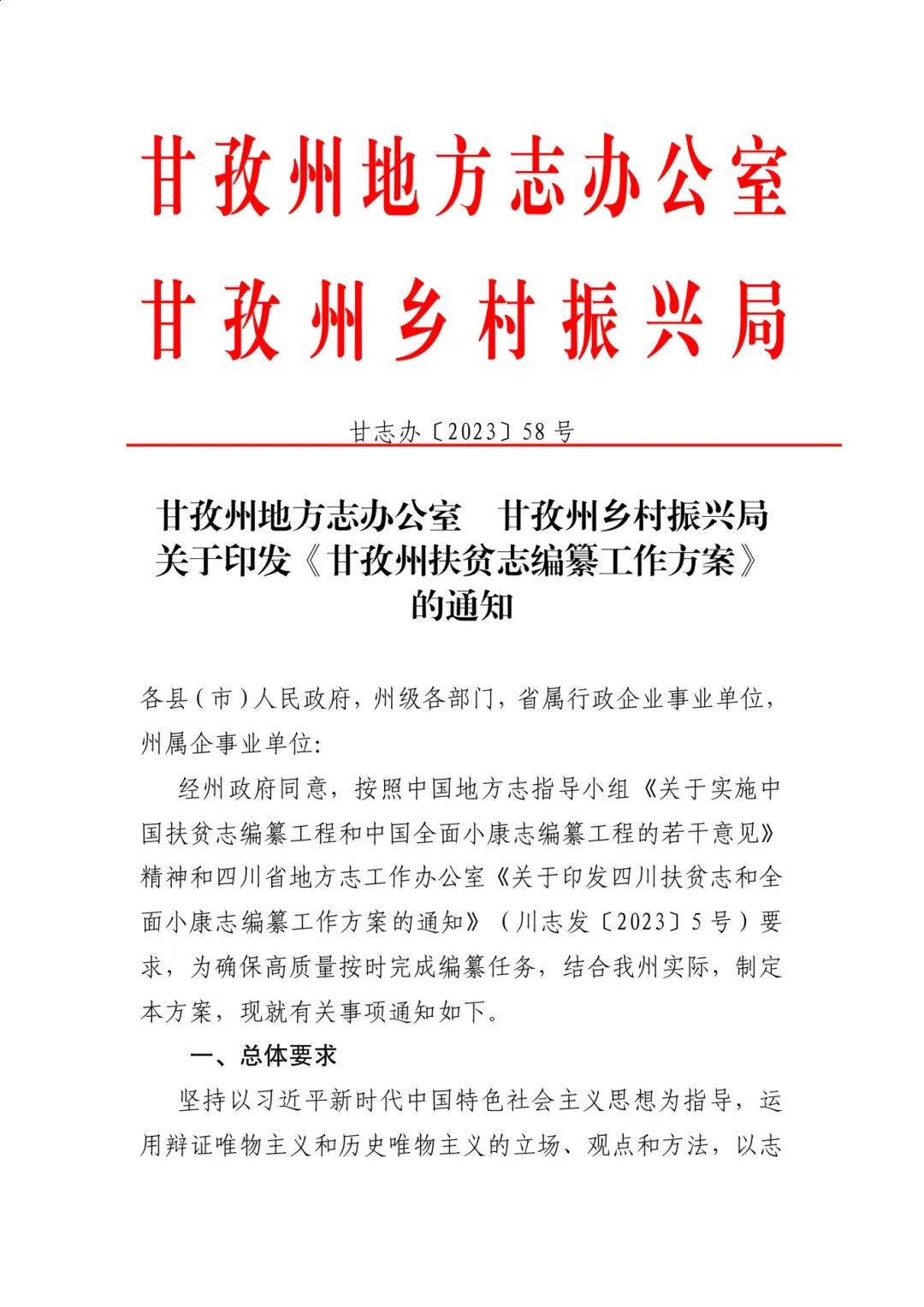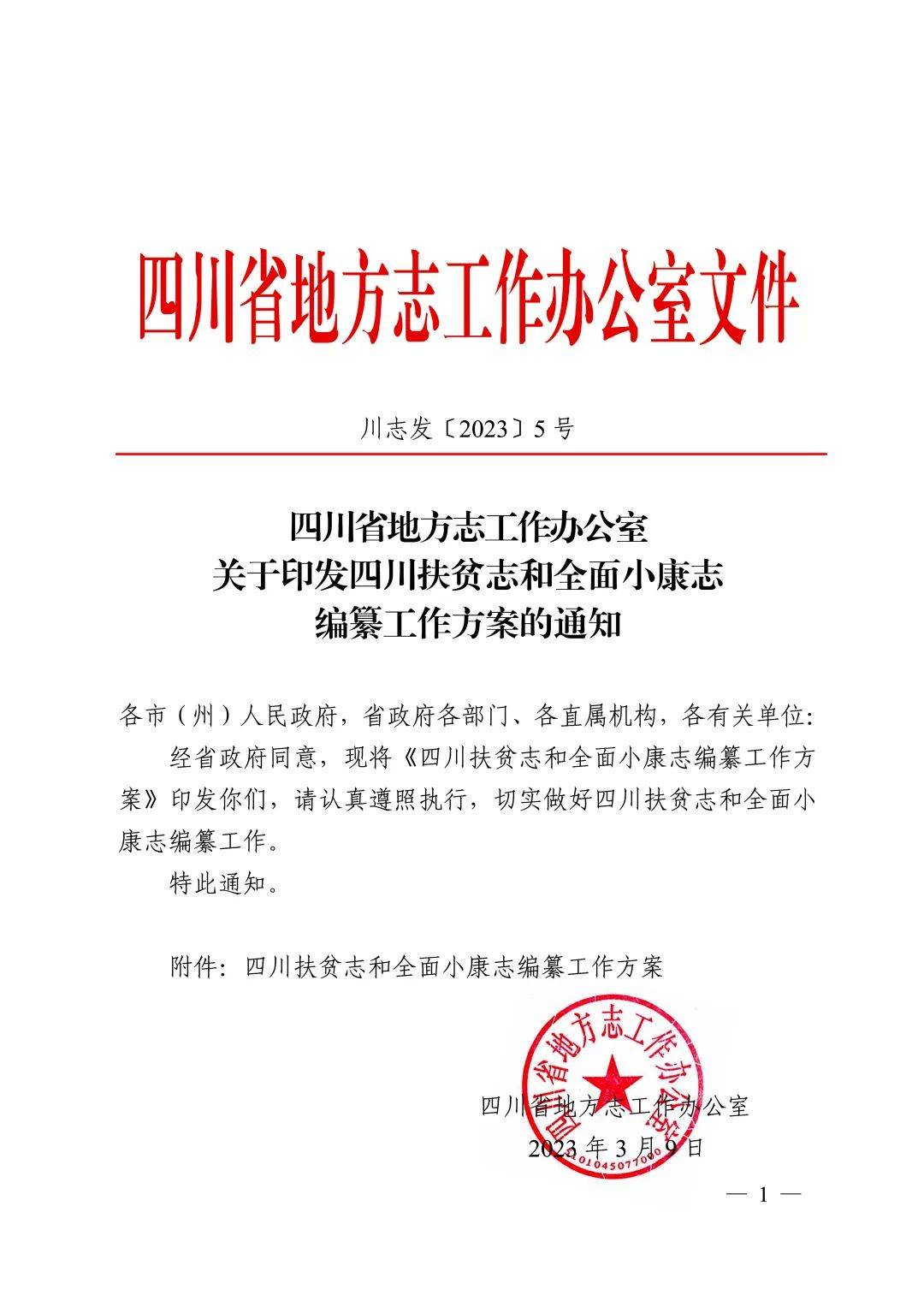 2023年3月6日,四川省地方志办印发四川扶贫志和全面小康志编纂工作方案。
