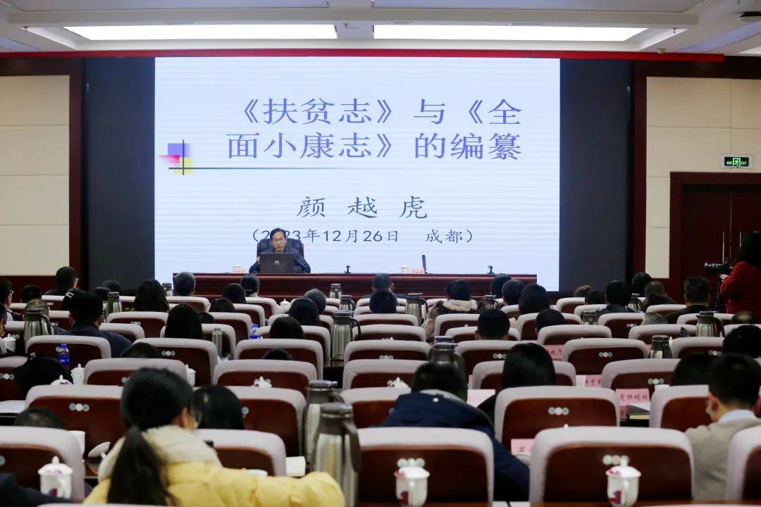 2023年12月26日,四川省地方志办召开《四川扶贫志》《四川全面小康志》编纂工作推进会暨培训会,邀请浙江省地方志编纂委员会办公室省志工作处原处长、《浙江通志》副总纂颜越虎授课(蒲建宇 摄)。