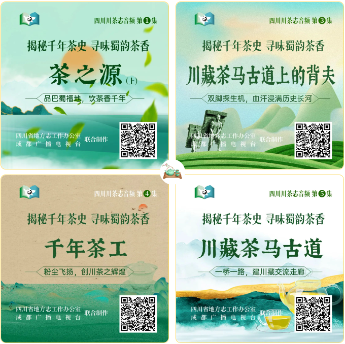 《揭秘千年茶史 寻味蜀韵茶香》(四川川茶志音频作品)共32集(含2集短视频),采用《四川省志•川茶志》等权威地方志文献资料,将专业性内容转化为通俗易懂的音频故事,通过生动的声音叙事和详实的史料梳理,全面展现四川茶文化的千年历史底蕴和独特魅力。该系列音频通过茶文化串联四川的自然地理、历史变迁、人文精神,展现茶在四川社会经济发展中的重要作用,具有鲜明的四川地情文化特色,大大拓展了四川方志文化的影响力。