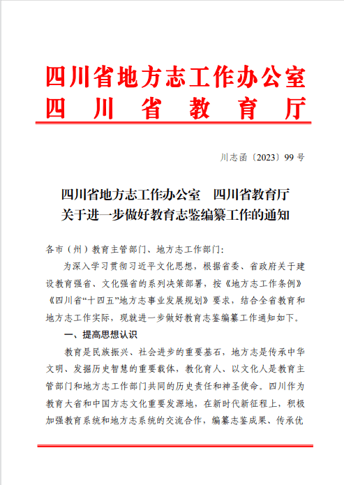 按《》(以下简称《规划》)“鼓励支持学校开展志鉴编纂”有关要求,四川省教育厅(简称教育厅)、四川省地方志工作办公室(简称省地方志办)积极推进《规划》落地落实,谋划部署教育志鉴编纂工作。全省教育和地方志系统加强协调,注重谋划,有序推进,2024年全省编纂出版教育志鉴161部。