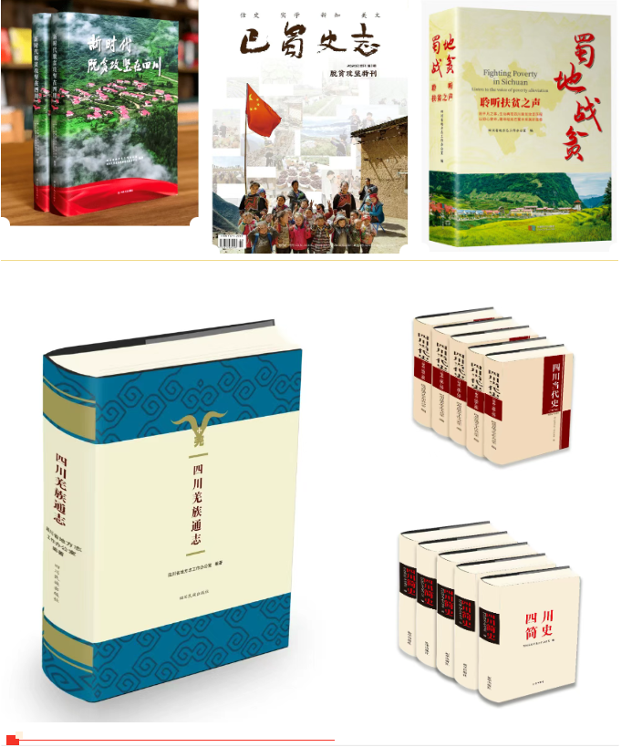 重大专题志书、史书及地方综合年鉴编纂是铭记伟大时代的责任担当。五年来,重大专题志书、史书及地方综合年鉴编纂蓬勃开展、成绩斐然。在完成第二轮修志重大文化工程扫尾工作的基础上,着手并持续推进《四川省扶贫志》《四川省全面小康志》及各市(州)109部扶贫志、2部全面小康志编纂,出版《新时代脱贫攻坚在四川》大型史志画册,全景式展现四川消除绝对贫困、全面建成小康社会的宏阔历程。其中,《四川省全面小康志》《成都市全面小康志》《南充市全面小康志》入选“中国全面小康志丛书”,入选数量居全国第二,《凉山州扶贫志》入选“中国扶贫志丛书”。推动《四川抗日战争志》《四川客家志》《四川羌族通志》《四川当代史》《四川简史》《乐山简史》等编纂出版,传承巴蜀深厚历史文脉,留存川人艰苦卓绝记忆,展现四川绚丽多彩的民族文化。