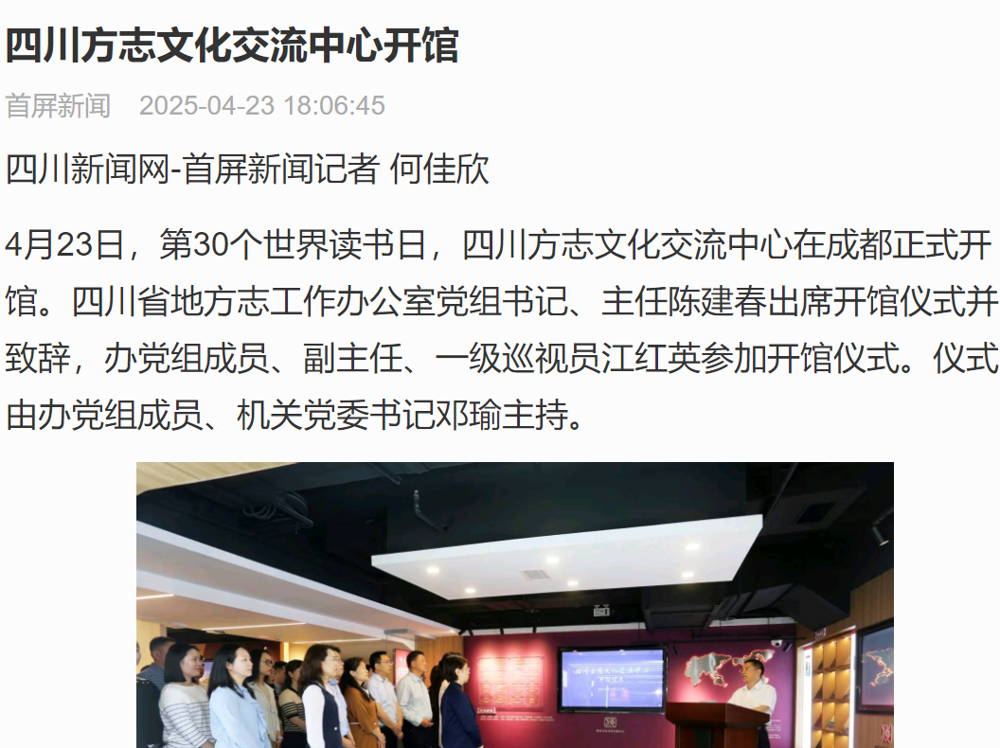 【首屏新闻】四川方志文化交流中心开馆