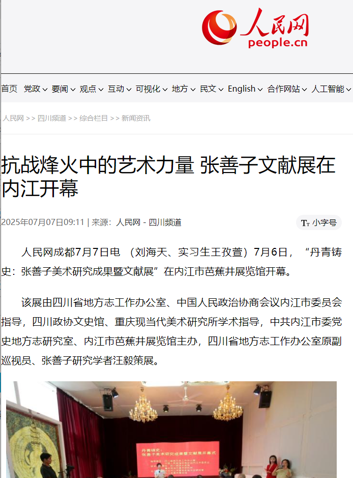 人民网成都7月7日电 (刘海天、实习生王孜萱)7月6日,“丹青铸史:张善子美术研究成果暨文献展”在内江市芭蕉井展览馆开幕。