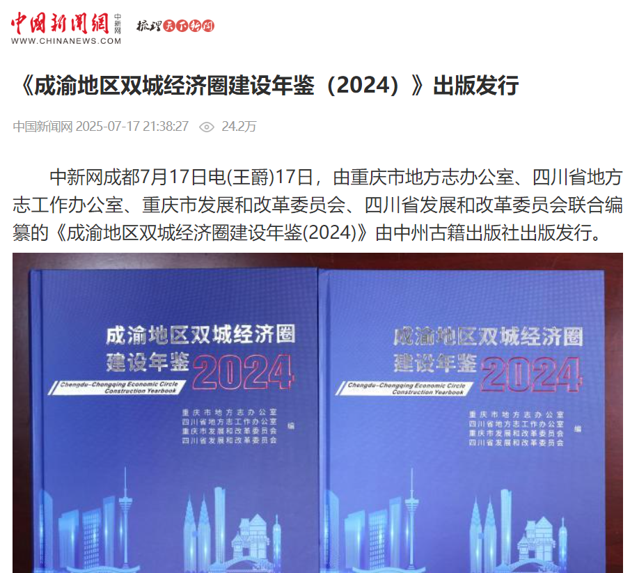 【中国新闻网】《成渝地区双城经济圈建设年鉴(2024)》出版发行