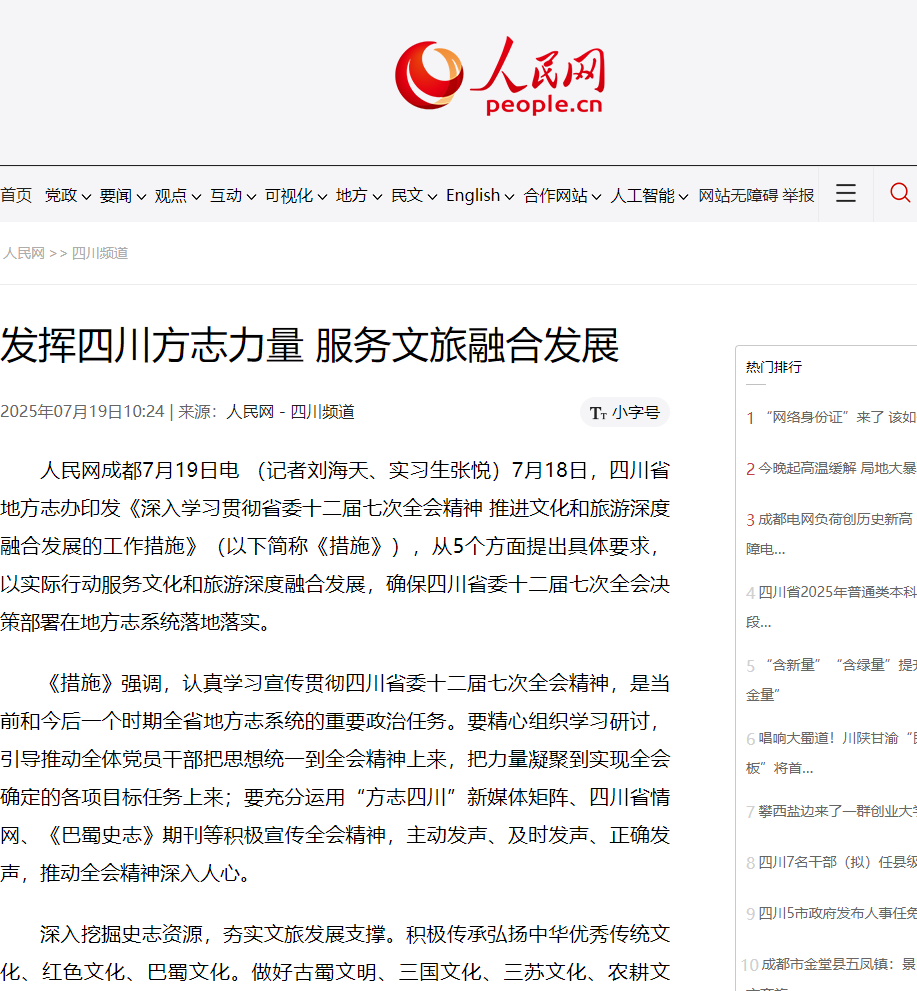 【人民网-四川频道】发挥四川方志力量 服务文旅融合发展