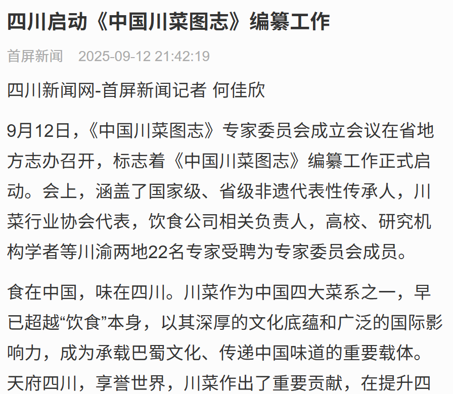 【四川新闻网】四川启动《中国川菜图志》编纂工作