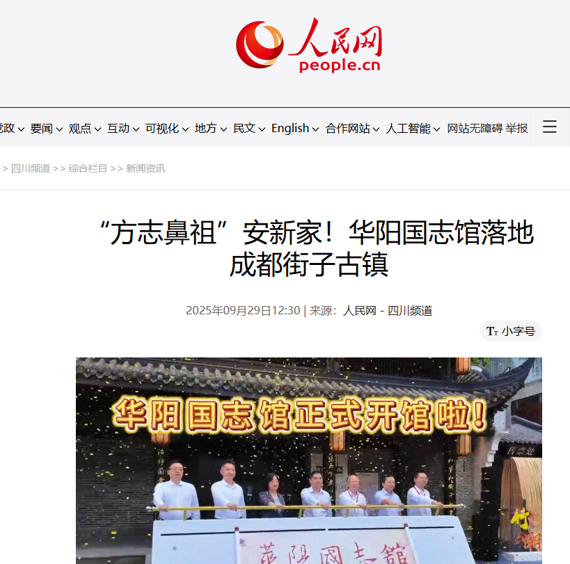 【人民网-四川频道】“方志鼻祖”安新家!华阳国志馆落地成都街子古镇