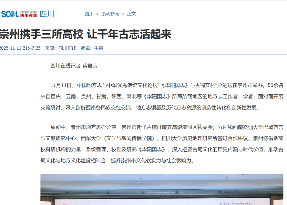 【四川在线】崇州携手三所高校 让千年古志活起来