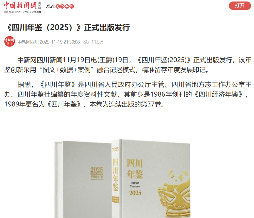 【中新网四川】《四川年鉴(2025)》正式出版发行