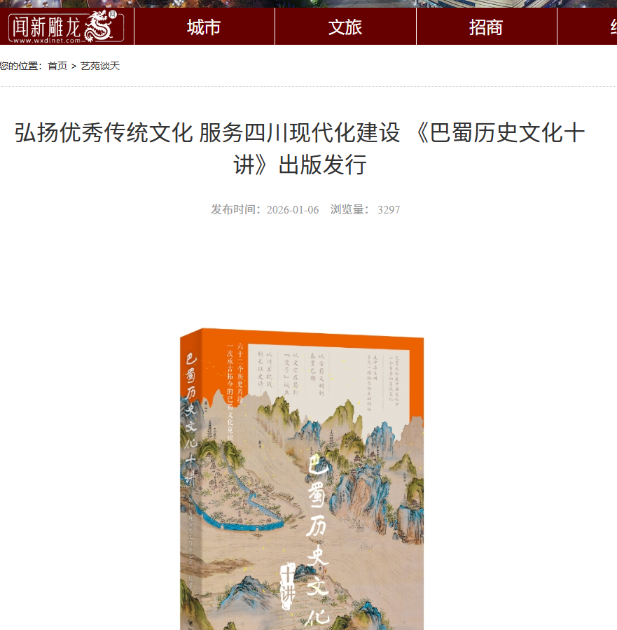 【闻新雕龙】弘扬优秀传统文化 服务四川现代化建设 《巴蜀历史文化十讲》出版发行