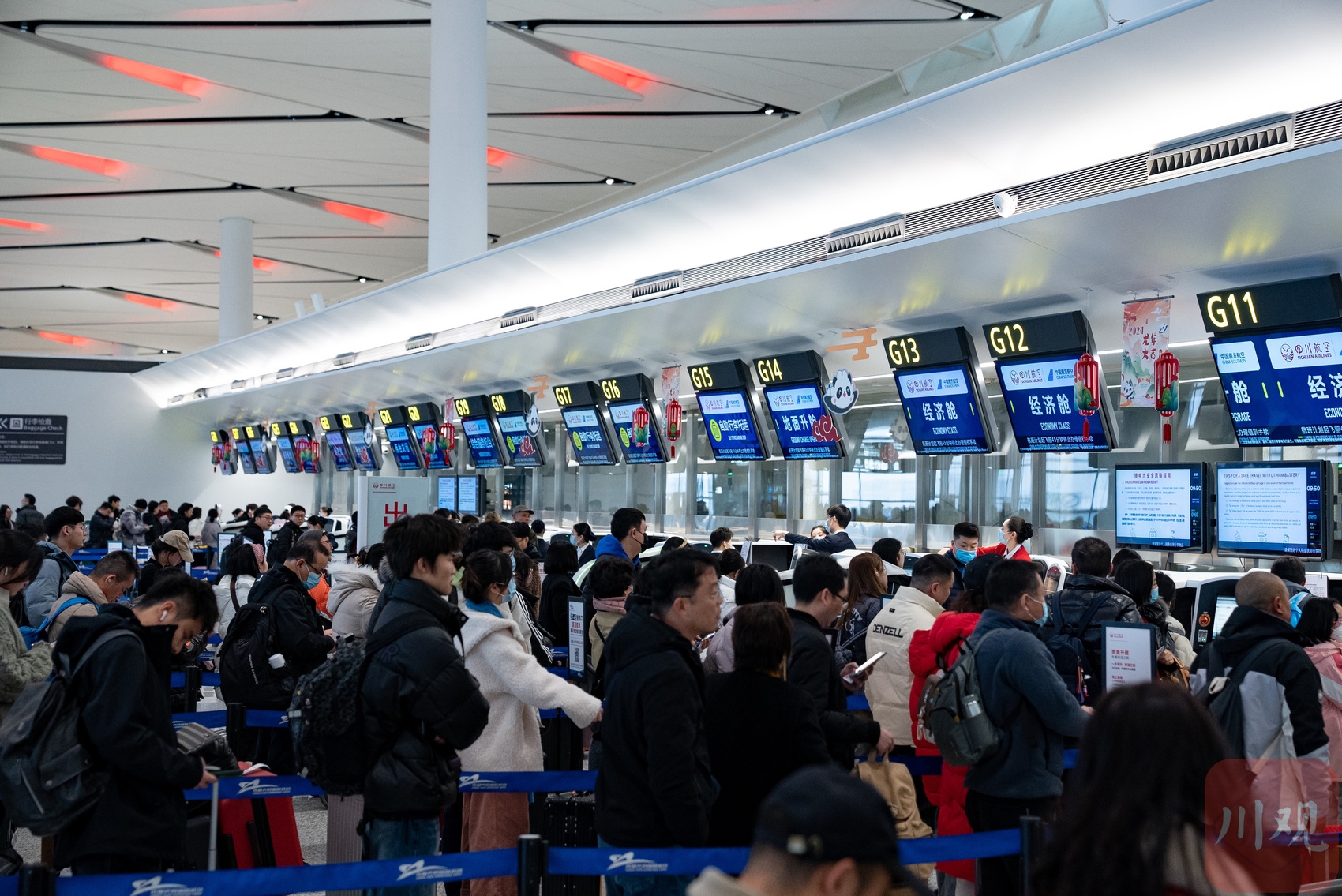 2月7日,成都天府国际机场T2航站楼出发大厅。李强 摄