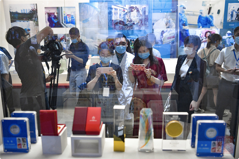 6月17日,在抗击新冠肺炎疫情参与者、亲历者的见证下,“战疫——四川抗击新冠肺炎疫情专题展”在四川博物院开幕。 郝飞 摄