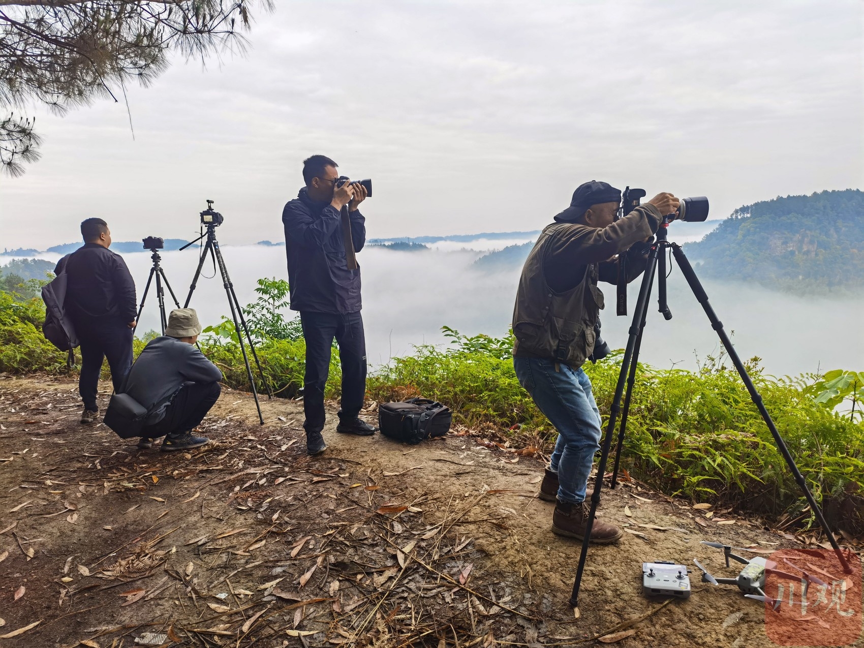 ▲“川观拍客”在骑龙坳景区拍摄云海
