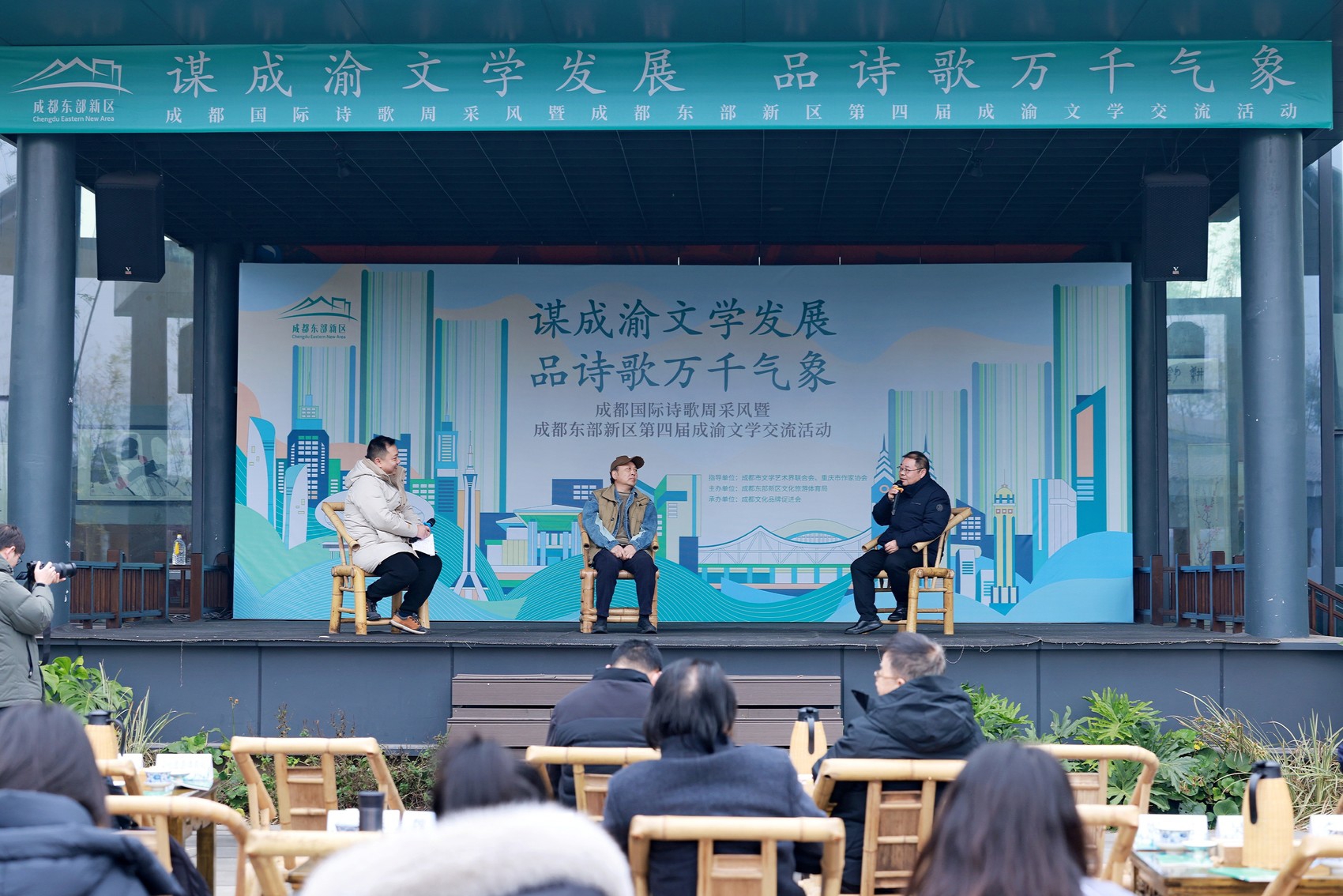 12月18日,“谋成渝文学发展 品诗歌万千气象”——成都国际诗歌周采风暨成都东部新区第四届成渝文学交流活动在世园会天府人居馆举行。叶延滨、王山、康伟、霍俊明、臧棣、凸凹、吴小虫、吕历、胡马、周东、李戈、妮可等数十位中外诗人文艺家齐聚一堂,以诗歌、文化传承、城市发展等话题为主题,进行诗意与思想的碰撞。