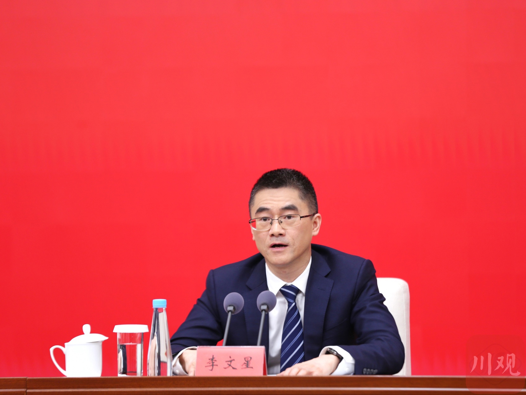 省委副秘书长、政研室主任李文星在回答记者提问。