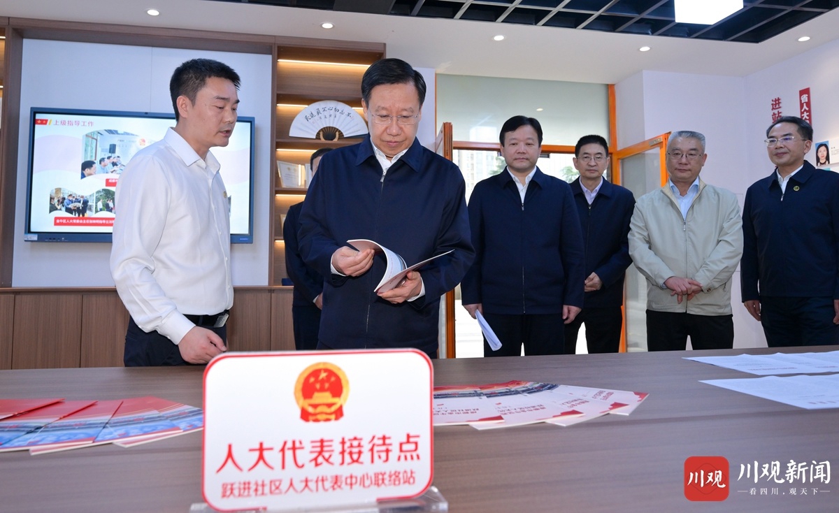 近日,省委书记、省人大常委会主任王晓晖到成都市金牛区西华街道跃进社区基层立法联系点调研,翻看档案资料,详细了解地方立法意见建议征集、普法宣传、法律服务等工作开展情况。