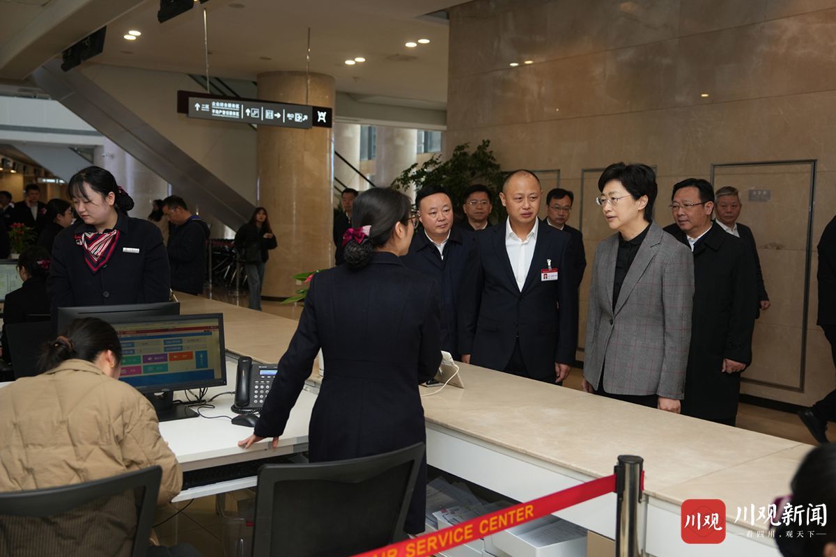 3月18日,省委副书记、省长施小琳在成都市武侯区政务服务中心,调研服务企业和群众“高效办成一件事”工作开展情况。