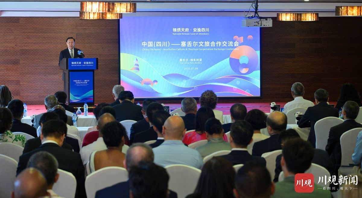 当地时间7月8日,“锦绣天府·安逸四川”中国(四川)—塞舌尔文旅合作交流会在维多利亚市举行。
