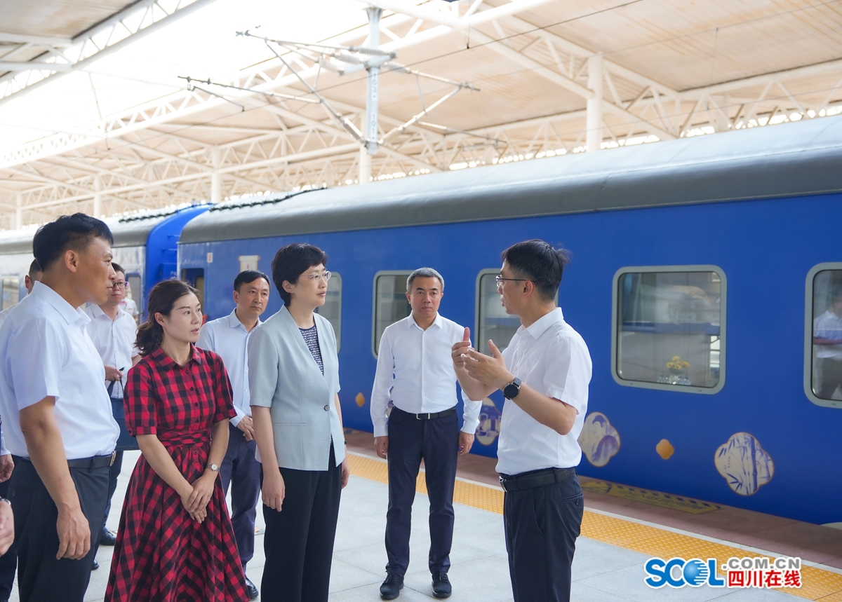 6月12日,省委副书记、省长施小琳在成都市郫都区安靖火车站,察看“熊猫专列”等特色旅游列车适老化改造、产品体系线路和服务银发经济等情况。