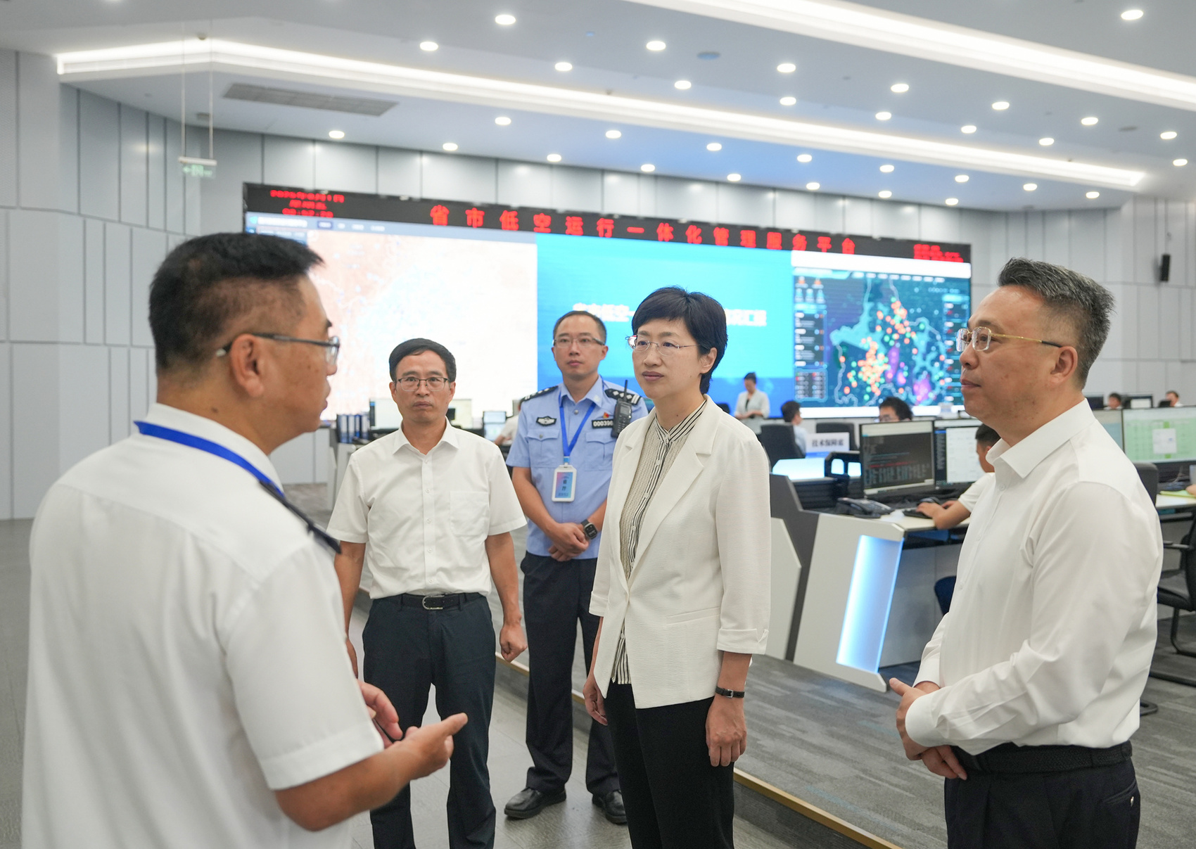 省委副书记、省长施小琳在省低空空域运行服务中心察看了解世运会期间重点区域低空空域安全管理、突发事件应对处置等情况。
