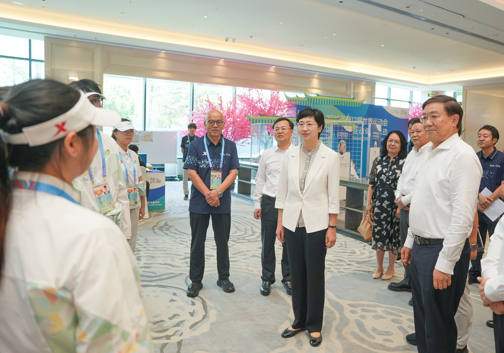 8月1日,省委副书记、省长施小琳在世运村A区,调研运动员住宿、餐饮、生活服务等配套设施设备运行管理情况,看望慰问世运会志愿者、电力抢修工人、消防救援指战员等。