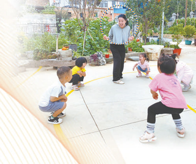 顾旭昌家的小院里,孩子们和大人在做游戏。 |
