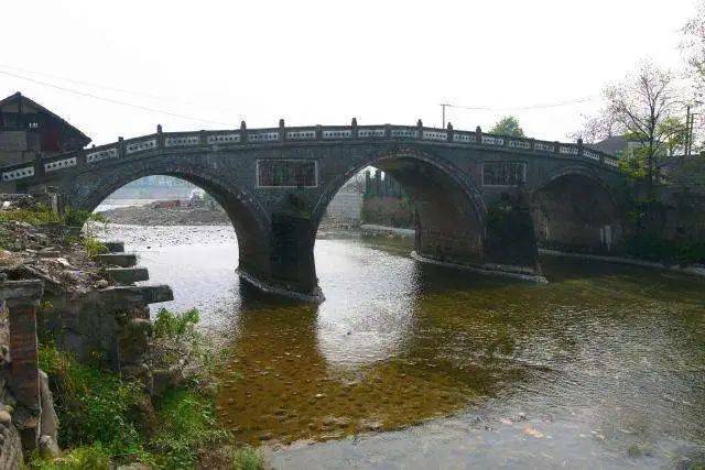 清代嘉庆年间的永利桥,是古镇年岁最长者。桥身长大约60米,为两墩三孔砖石结构,远远看上去就像是一处彩虹高悬在碧波之中,又像一枚厚重的钻戒镶嵌在柔指之上,尽显小桥流水之古朴神韵,是古镇之内印痕最深的老牌建筑。该桥拱形独特,边拱呈半圆形,中拱呈蛋尖形,巍峨高耸,如驼峰穹窿,气象峥嵘,很像一位忠诚的卫士,一直默默地守护着古镇,一直陪伴着古镇的代代守护者看月缺月圆,看日落日升。