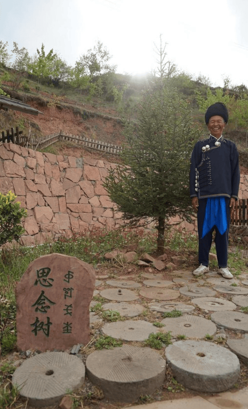 吉地尔子站在“思念树”前(新华社记者 尹恒 摄)