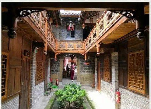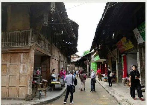 古镇上现存数万平方米的古民居及祠堂、寺庙,大部分建于明朝末年、清代和民国年间,建筑多为依山傍水的四合院布局,依山者皆为二至三进院落,进进升高,幽雅清静;傍水者皆采用吊脚楼以挑廊观景,古朴别致;沿街建筑多为二层骑楼,下开店铺上作住宅,整齐一色。祠堂庙宇及大户住宅有起伏多变、不同造型的防火山墙,挑梁屋脊雕绘着各种精美图案。就单体建筑而言,均系穿斗式木结构,青瓦屋顶,木格花窗,大都具有高、透、敞、起翘大、出檐深的特点。