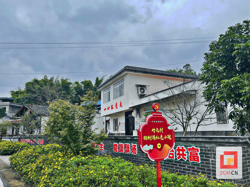 好在并未失望,基地修建在主道路边,一处向阳的开阔地带,与基地连在一起的还有“卢德铭”故居成列室(后来搬迁了)、竹元村村公所,门前平整出一个小广场和草坪,周围建有几幢新农村建筑楼,占地面积不大,但布局紧凑,看上去干净整洁,广场边围坐着一群村民,见我们这边人来人往,便远远地看着我们。