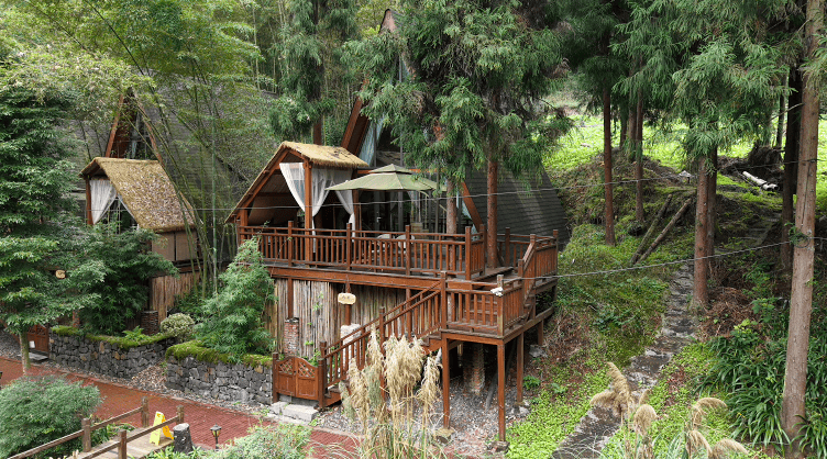 餐后,下榻于藏匿于水墨花溪谷的森林木屋,富含负氧离子的空气沁人心脾。而旅程的点睛之笔,莫过于阳台一隅引来的天然硫磺温泉。在星空林影的陪伴下,让温润泉水洗去疲惫,完成从味蕾到身心的全面疗愈。
