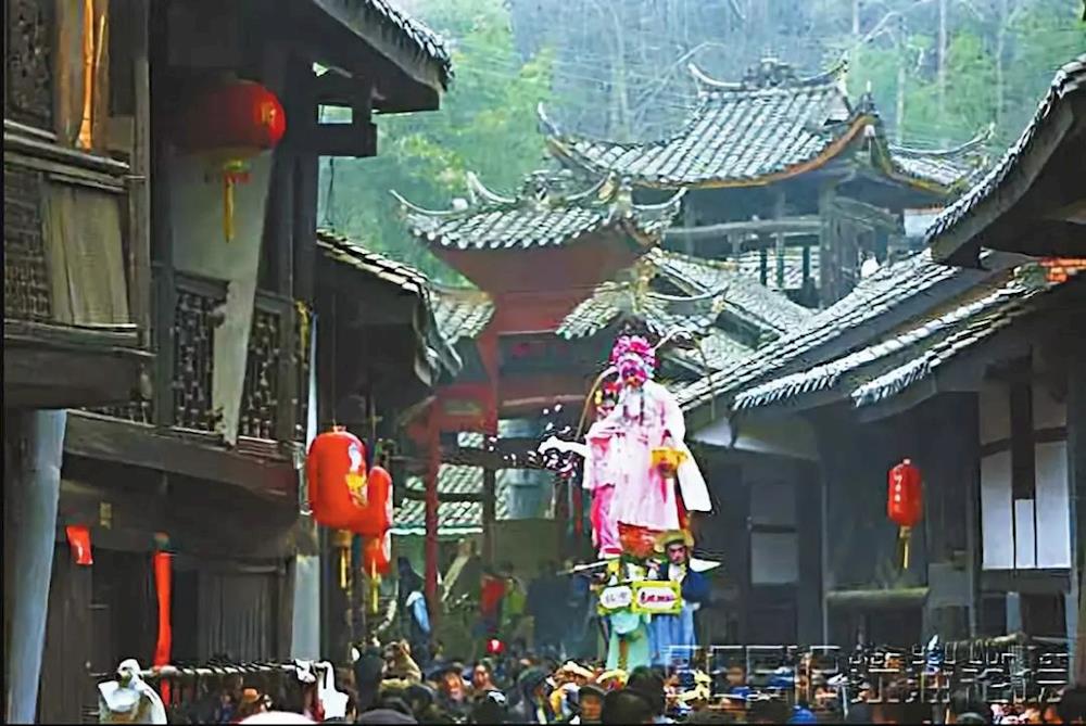 《秋江》《踏伞》《打雁》《白蛇传》《西游记》……高台戏演绎的都是经典川剧折子戏。每逢农历二月初一和桃花节,青林口就会举行盛大的高台戏巡演,不固定在一个地方,抬行于街道、戏院、会馆之间。演出以狮子、戏妆八仙开道,配以川戏锣鼓唢呐,此外还要配演踩高跷、彩凉船、打钱棍、烧火龙、耍龙灯等节目,场面热闹非凡。沿街居民点燃香蜡、鞭炮,祈求风调雨顺、国泰民安。