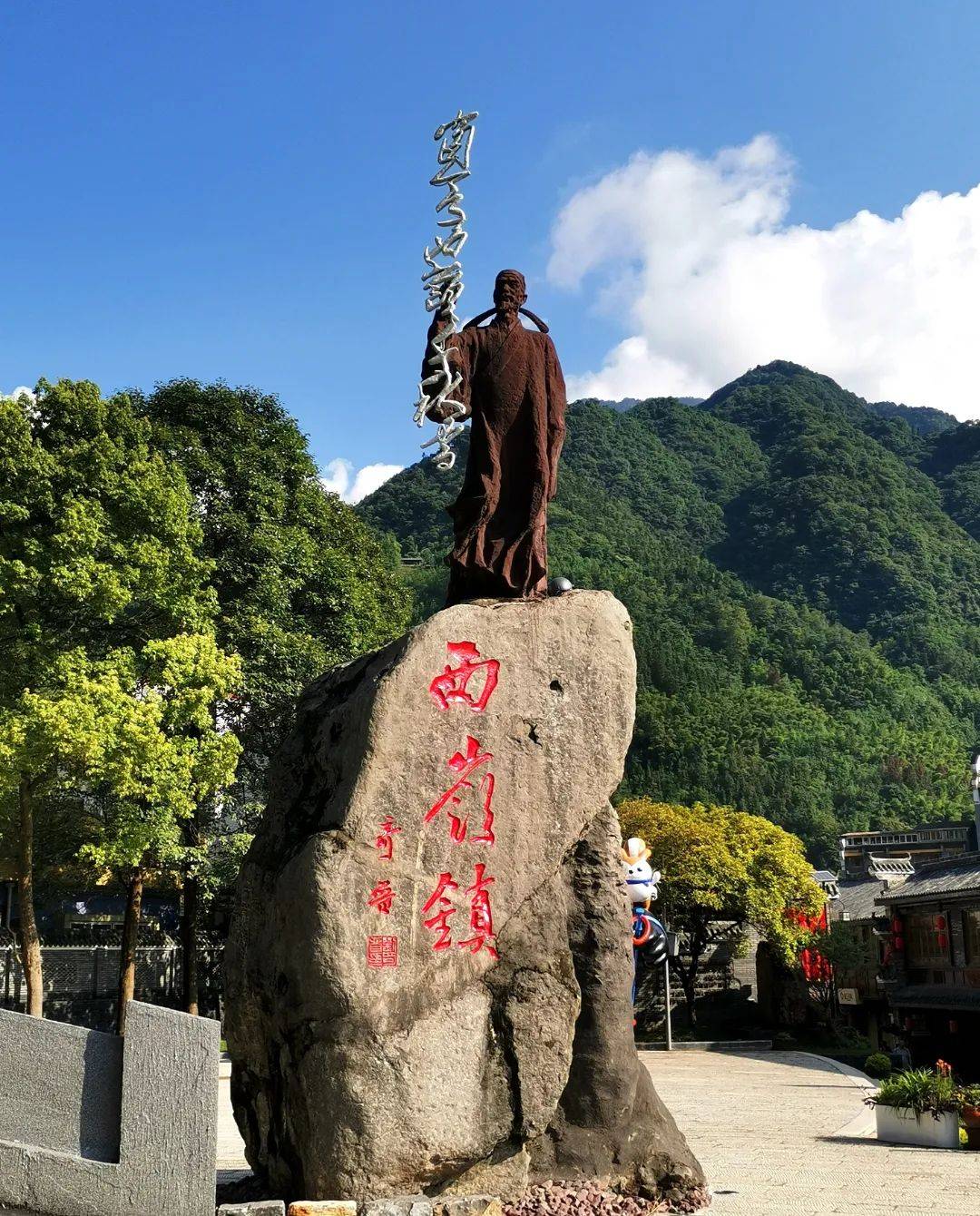 大邑县西岭镇题刻及杜甫雕塑(孙和平 摄,图源:四川方志图库)
