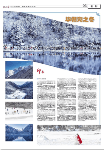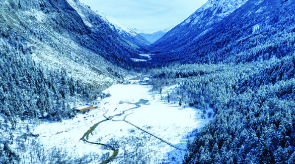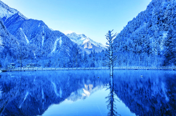 冬雪,你的寄托你的牵挂,她就在你的身边,她就在树梢上,在河畔上,在原野上,在毕棚沟雄壮的山川上,在龙王海收纳群山倒影的峰峦上,在娜姆湖酒店别墅群的房顶上,在磐羊湖宽阔的冰面上,在白龙瀑布游动的冰骨上,在卓玛滩宽展的滑雪场上,在月亮湾和燕子岩铺展的草坪上……她尽情地装扮毕棚沟的山水世界,直至千山皆白万树花开。