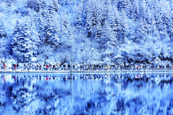 去年十月,正是毕棚沟七彩绚丽的最佳时节,原本赏秋的游人,却遭逢了不期而遇的秋雪。