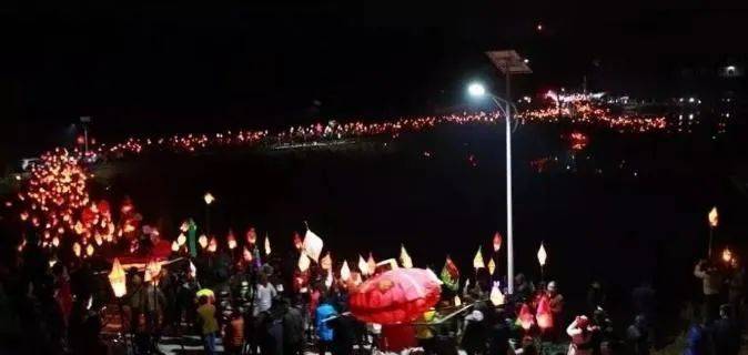 又有人说:到了夜间,几万只灯笼点起来,形成移动的“巨龙”。这灯光依山顺势,蜿蜒绵长,宛如璀璨的星河。打头的抬着巨大的蛴蟆灯,随着鼓点喊唱:蛴蟆公,蛴蟆婆,把你蛴蟆送下河……人群大声呼喊、放声哄笑,伴着一路冲天而去的烟花,快乐的心情得到尽情挥洒。