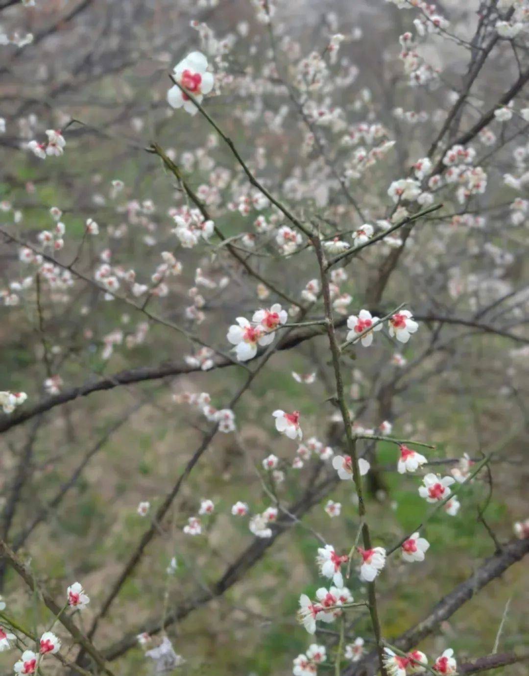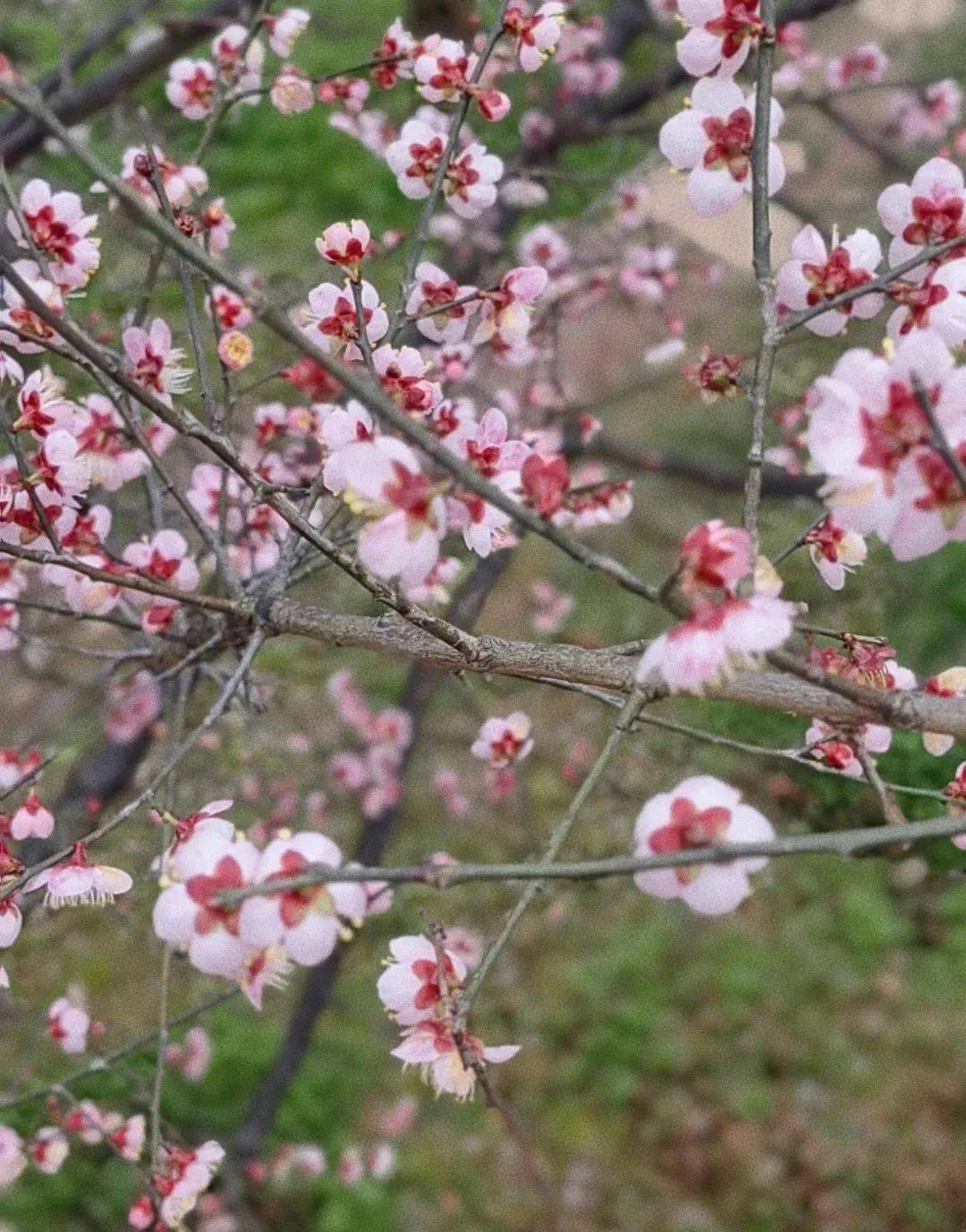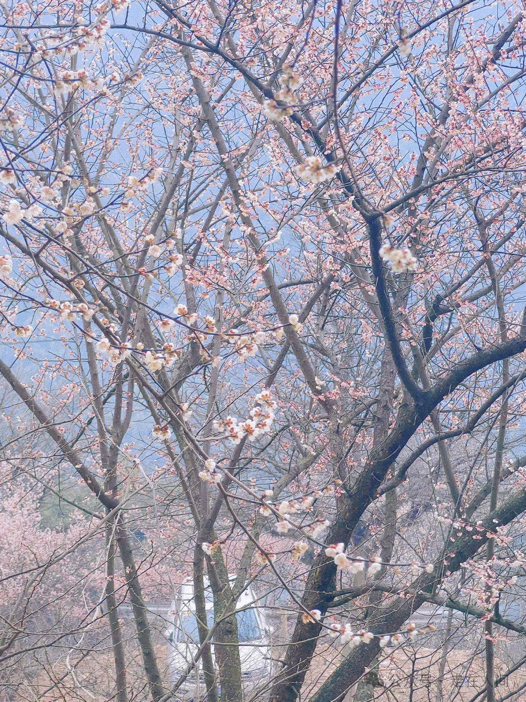 我们沿着青石板路,慢悠悠地走到云涧露营地。十几颗高大的梅花树,姿态各异,花色不同,正肆意妖娆。人们在树下,围炉煮茶,聊天说笑,十分惬意。拍照的人们,笑靥如花,喜悦洋溢在脸上,不知道是花美还是人更美。