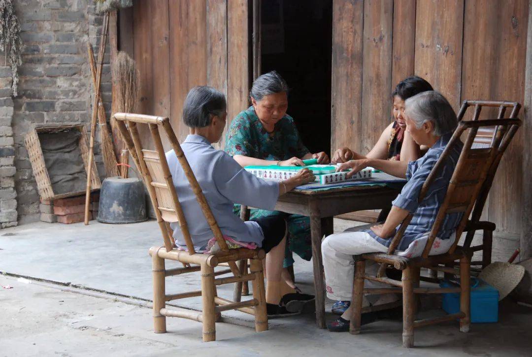 蒲江县西来古镇上的老人正在打牌娱乐(蓬州闲士 摄于2008年6月29日,图源:四川方志图库)