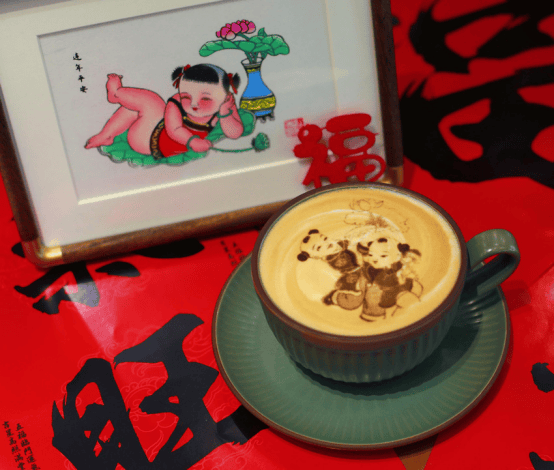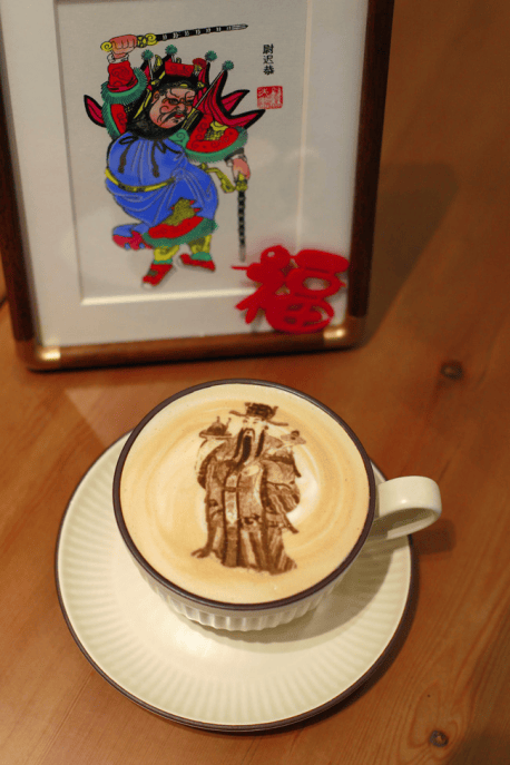 财神带宝入杯中,门神贯甲画铺成。童子拜年开新运,仕女春游梦中行。游客至此,各有选择:想发财的来一杯“财神”,想平安的来一杯“门神”……在欢声笑语的品味中,不只有咖啡在唇齿留香,还有文化在心中徜徉。