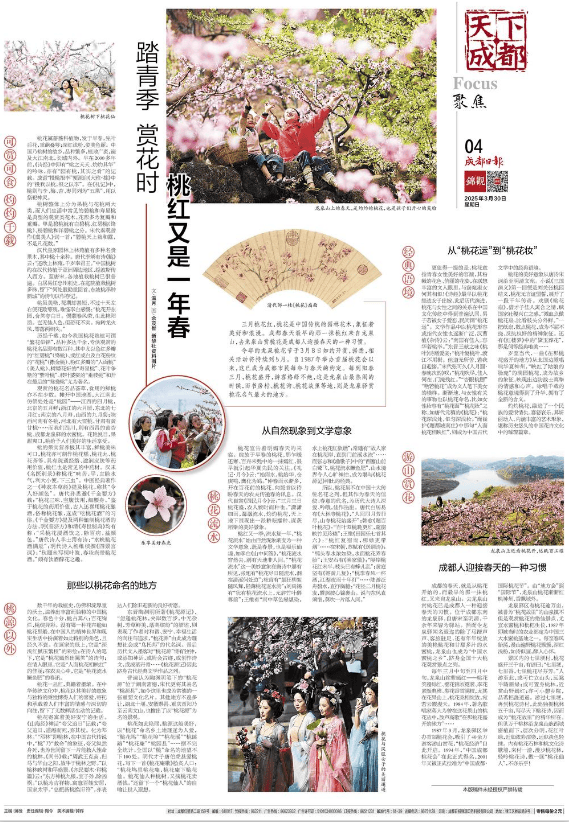 三月桃花红,桃花是中国传统的园林花木,象征着美好和浪漫。成都春天最早的那一抹桃红来自龙泉山,去龙泉山赏桃花是成都人迎接春天的一种习惯。