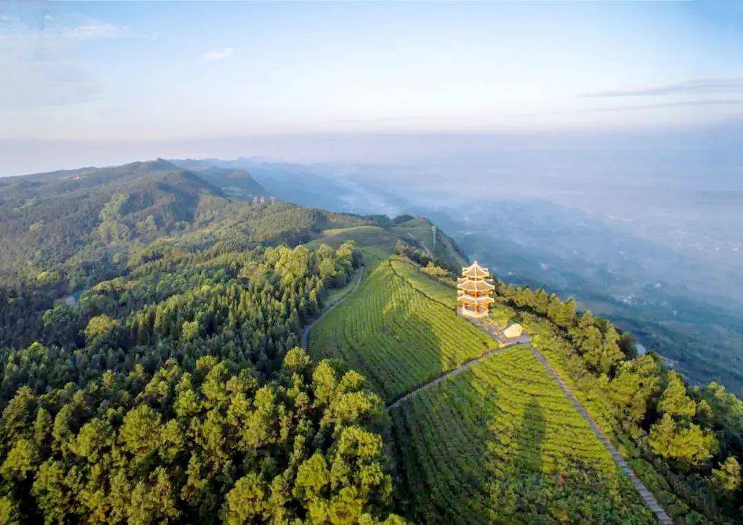 6月上旬的一天,我们到道林沟采风。首先到了云中茶海,茶树被修剪得整整齐齐,这片坡地,倒是颇有一种意趣。这是充养之地,徜徉茶园,满眼绿色,视野开阔,越往高处走,山风徐来,微微凉爽,有一种洗胸襟的快意。到达再高一些的茶亭,极目远眺,泸县、荣昌、隆昌的山水尽收眼底,苍穹下的群山小镇也仿佛连接一体,一览无余。