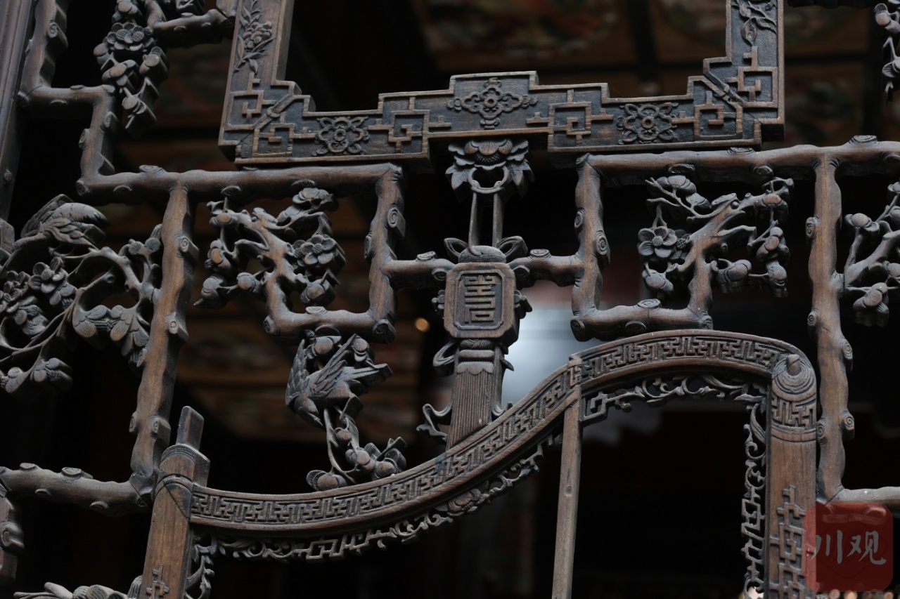 “整个建筑以精湛的木雕艺术见称,采用圆雕、浮雕、镂空雕等手法,刻工精细,形态生动,构图巧妙。”袁钰介绍,尤以“九龙坊”“九凤枋”“百鸟梅花窗”和“叙永八景”木雕为最佳,被誉为“川南木雕瑰宝”,可惜如今这项整木雕刻技艺已经失传。