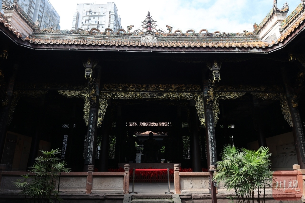 盛夏的阳光透过屏风、雕窗,照在石板和莲花上,这座占地面积4500平方米的老建筑隔绝了街道上的喧闹,历史的厚重感扑面而来: