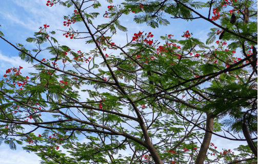 “叶如飞凰之羽,花若丹凤之冠。”这句话,便是文人墨客对凤凰树样貌的描述。