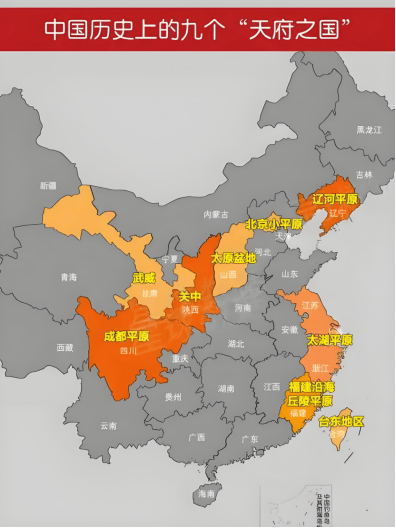 查阅古今文献发现,中国历史上被称作“天府之国”的地方,至少有9个。