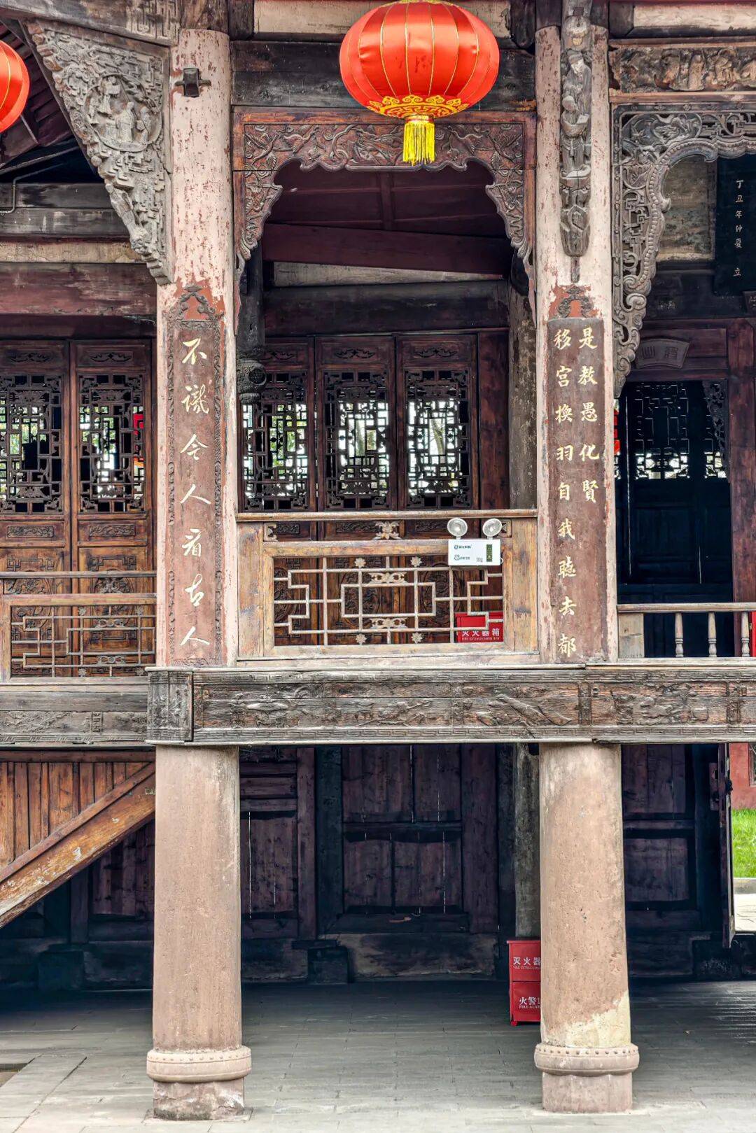 观世如观剧,识今如识古,人人皆在台上,又在台下;人人皆为古人,又是今人;人人皆扮粉墨,又当看客。两副楹联深含世间哲理,予人以教化;书法刚柔相济,又给人以美感。戏台上下四周,用多副精美的楠木浮雕图案装饰,将戏台装点得既富丽堂皇又典雅庄重。