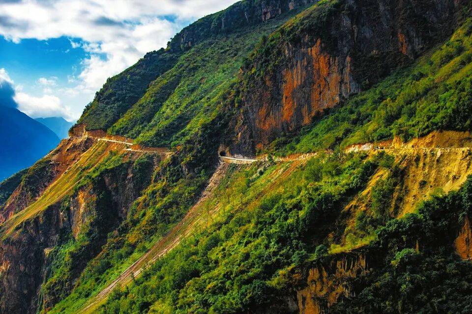 2019年12月31日,全国最后一个不通公路的建制村——布拖县乌依乡阿布洛哈村对外通道打通。图为绝壁上的公路(图源:华西都市报)