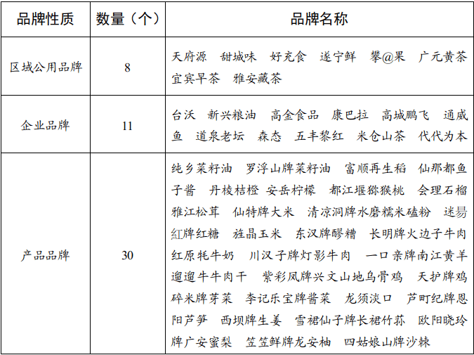 四川发布首批“天府粮仓”品牌商标授权使用名单6月13日,四川发布首批获得“天府粮仓”品牌商标授权使用的49个农业品牌及主体名单,其中区域公用品牌8个、企业品牌11个、产品品牌30个。